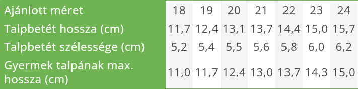 MÉRETTÁBLÁZAT: