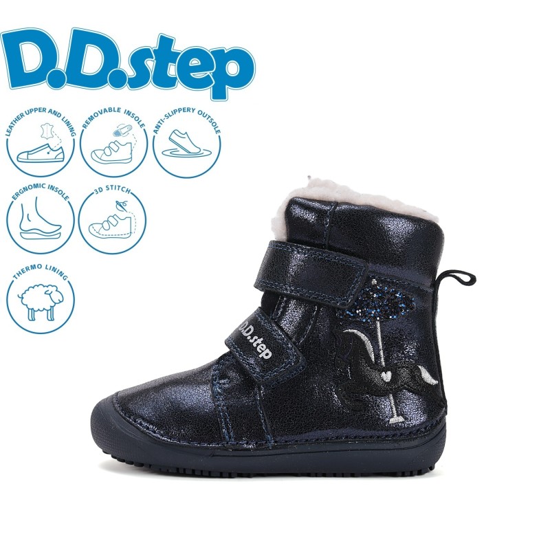 D.D. Step kék csillogó kislány barefoot bélelt bokacipő