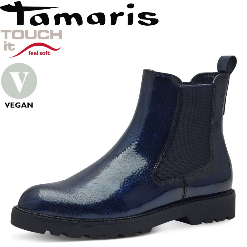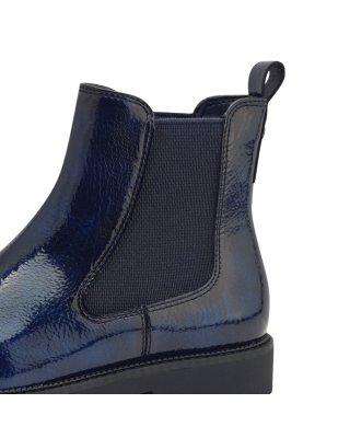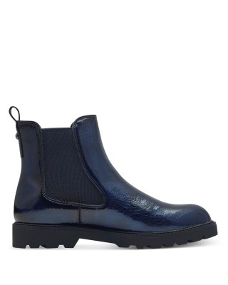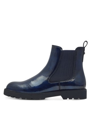 37-es Tamaris kék lakk bebújós női bokacsizma