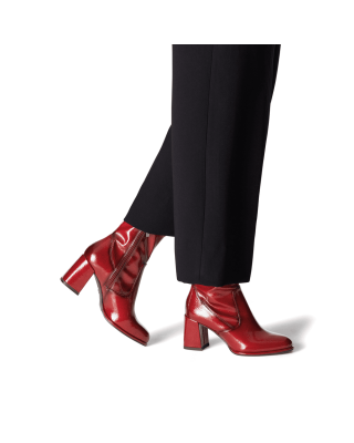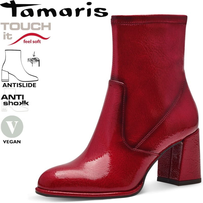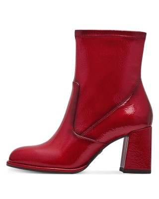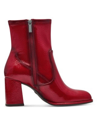 36-os Tamaris piros lakk magassarkú női bokacsizma