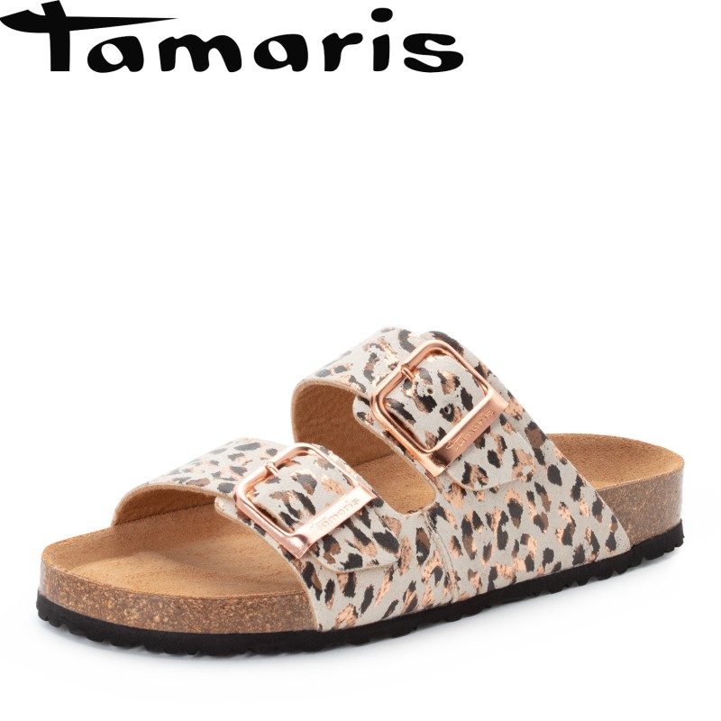 Tamaris bézs leopárdmintás női papucs